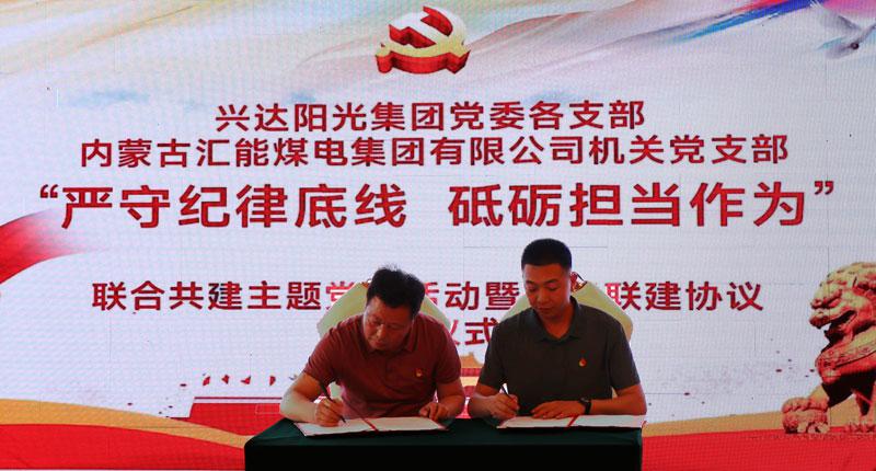 興達(dá)陽(yáng)光集團(tuán)董事長(zhǎng)楊喜林,黨委書記楊寧參加了活動(dòng)并陪同全體黨員參觀了興達(dá)集團(tuán)黨建、企業(yè)展廳,介紹了興達(dá)集團(tuán)的黨建成果和企業(yè)文化。活動(dòng)中,全體黨員重溫了入黨誓詞,觀看了嚴(yán)守紀(jì)律主題教育片,體驗(yàn)了互動(dòng)式主題教育動(dòng)畫。最后,匯能集團(tuán)黨委與興達(dá)陽(yáng)光黨委簽署了黨支部黨建聯(lián)建協(xié)議書。